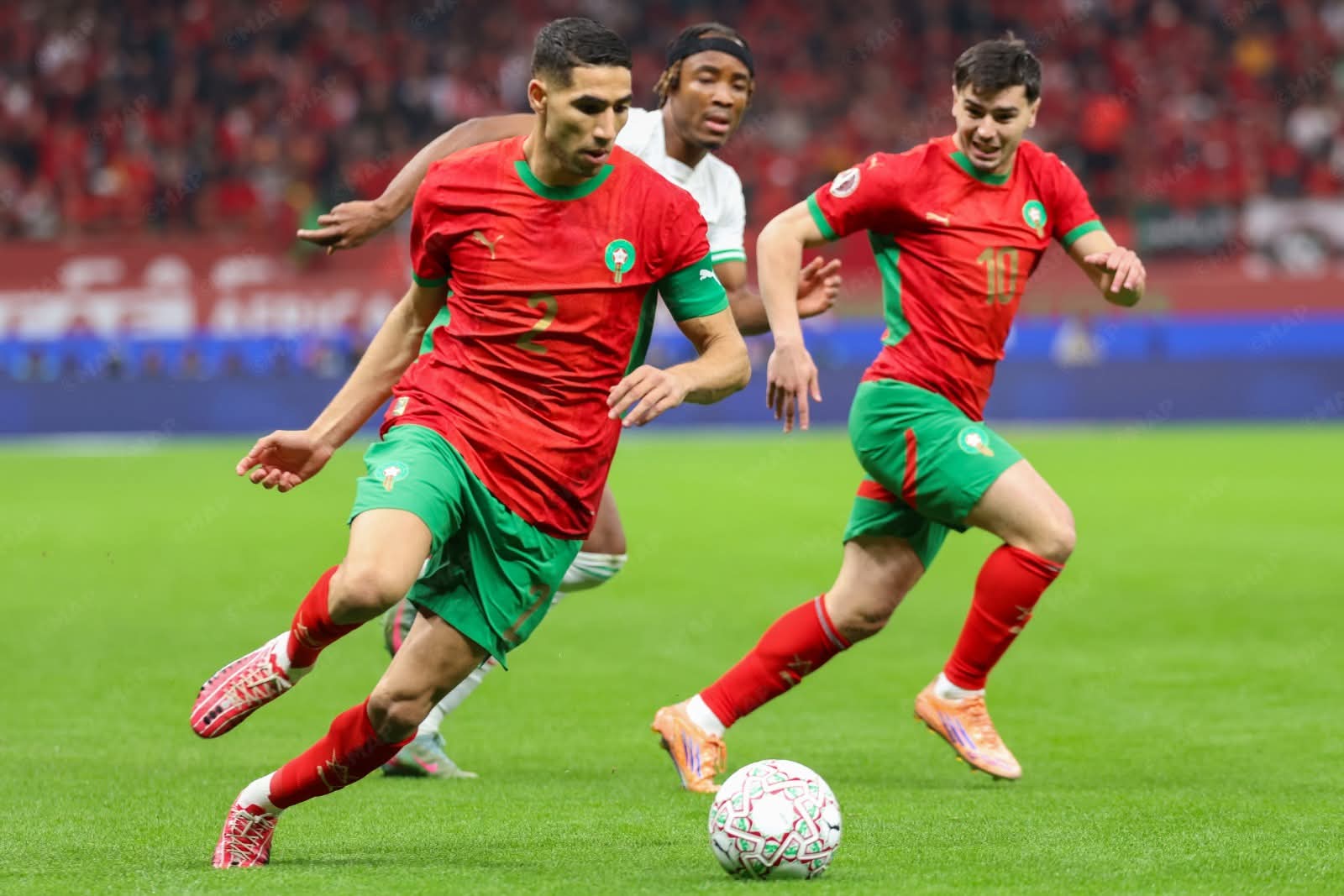 ولم يتوقف الضغط المغربي، حيث ارتقى صيباري في الدقيقة 21 لكرة عرضية داخل منطقة الجزاء، وسدد رأسية قوية لكنها مرت فوق العارضة. وفي الدقيقة 29، أهدر دياز فرصة أخرى بعد عرضية من أشرف حكيمي، لكن تسديدته الرأسية مرت خارج المرمى.
